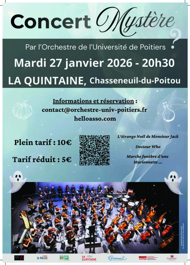 L'OUP (Orchestre de l'Université de Poitiers) proposera un programme de musique classique, film et film d'animation avec pour titre :