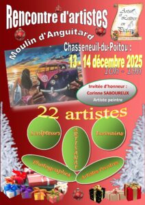 Cette manifestation rassemblera 22 artistes venus partager leurs univers et leur savoir-faire. Sculpteurs, écrivains, photographes, artisans et artistes peintres investiront les espaces du Moulin d’Anguitard pour présenter leurs créations, échanger avec les visiteurs et faire découvrir la richesse de leurs pratiques.